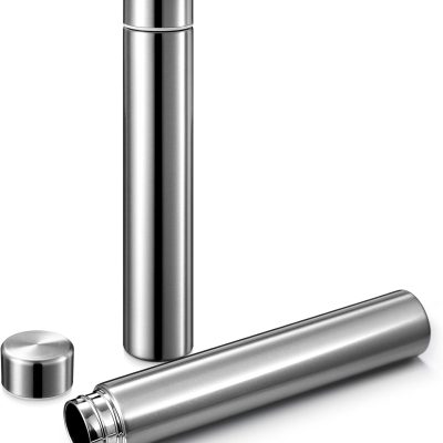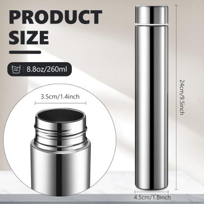 Water Bottle 8.8 oz Small Stainless Steel Purse Compact Insulated Water Bottles Camping Travel Backpack Pocket Flask for Car Cold Coffee Tea(Silver,2 Pack)