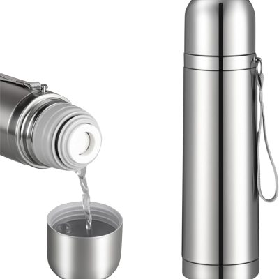 Stainless Steel Thermal Bottle Vacuum Insulated Coffee Trave Mug for Hot and Cold Drinks Double Walled Sport Water Flask with Cup 17Oz/500Ml(Silver)