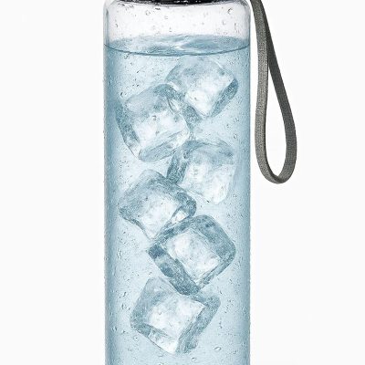 18 oz Clear Plastic Water Bottle with Stainless Steel Screw Cap – Reusable, Leakproof, BPA Free Sports Bottle with Carrying Strap Over Lid (Modern)