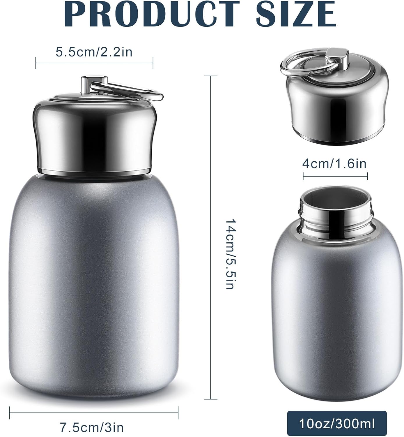 1 Pcs 10oz Mini Water Bottles Stainless Steel Slim Insulated Thermal for Hot Cold Drink Thermal Small Vacuum Portable Water Bottle for Women Gifts Travel Camping Hiking (Silver)