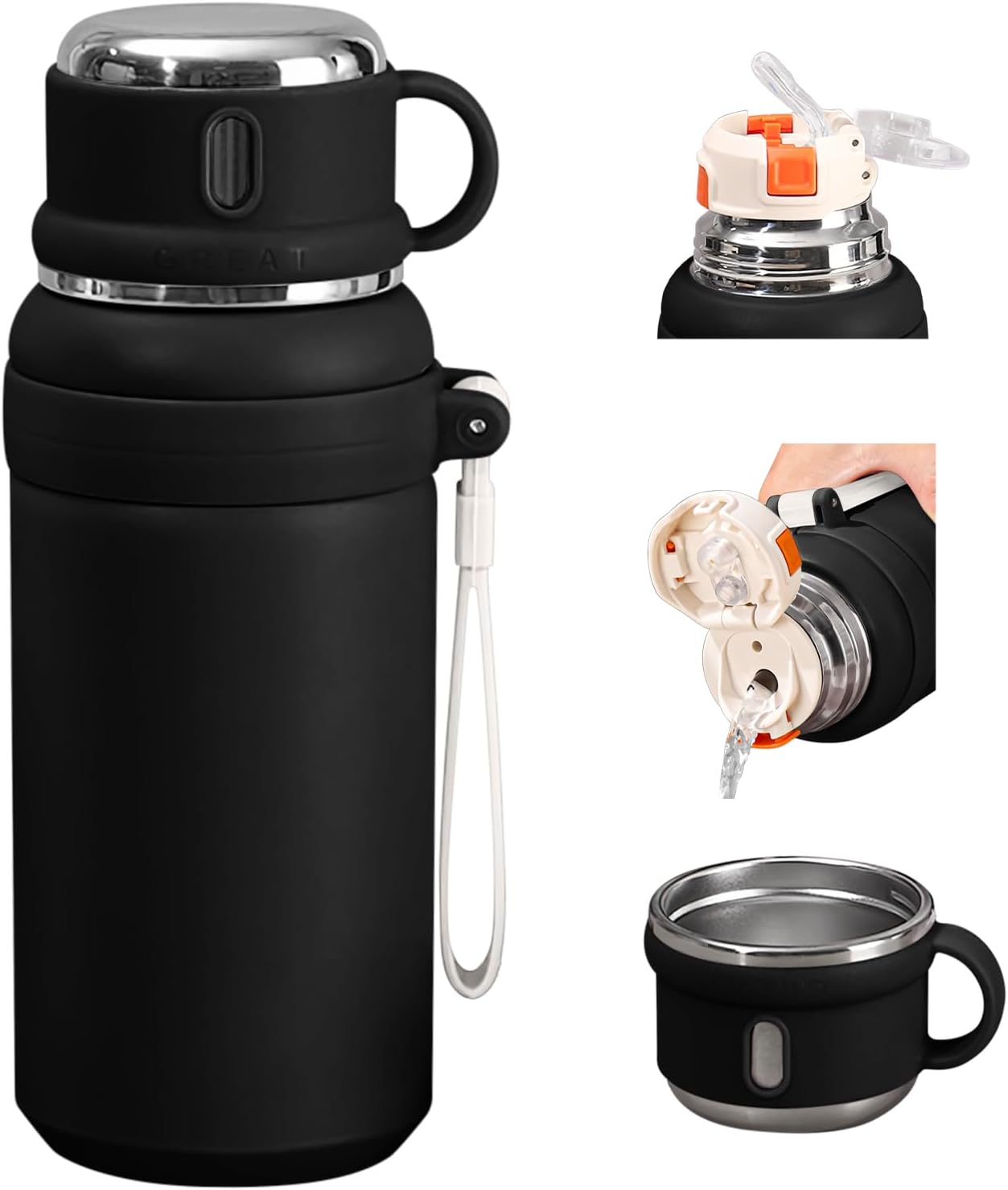 - 3-in-1 design: Our thermoses integrates a direct drinking spout, a straw spout, and a small cup to meet different usage needs, making it convenient and practical.
