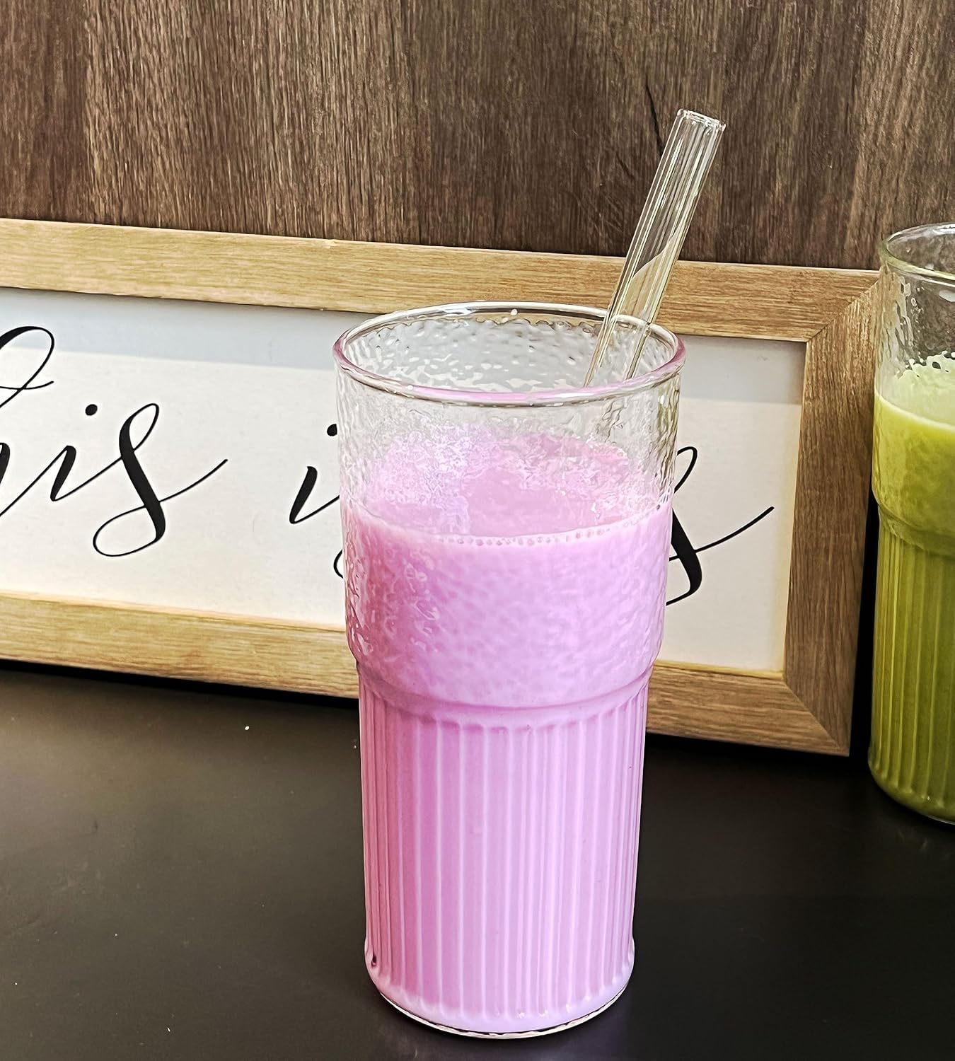 - REUSABLE GLASS TUMBLER WITH STRAW AND LID & VERSATILE USES: This cute versatile cup design is perfect for a range of beverages, including iced coffee, juice, smoothie, bubble tea, soda, and milk. Plus, the cups are easy to clean and dishwasher safe, ensuring hassle-free maintenance