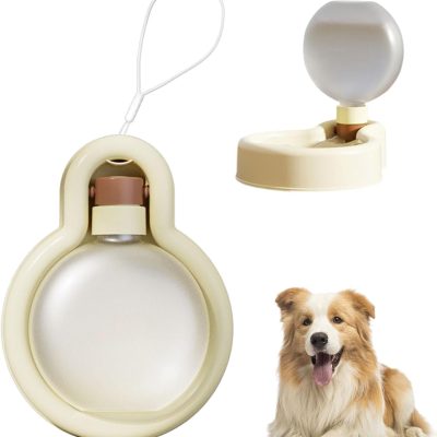 Portable Dog Water Bottle Dispenser, 17oz Dog Outdoor Water Bottle Bowl Foldable Pet Travel Eating Drinking Bottle Bowl (White, 16.9oz)