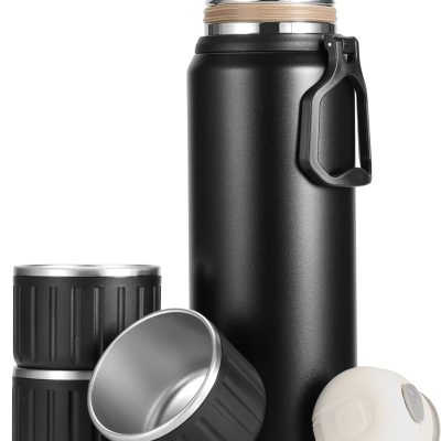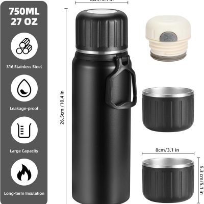 750ml/27 OZ Coffee Thermo with 3 cups, Insulated Water Bottle, Stainless Steel Vacuum Flask Set for Hot and Cold Drinks, Gifts Box