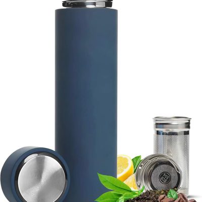 All-in-One Tea Thermos with Infuser for Loose Tea, Coffee, Fruit-Infused Water (Hot/Cold) – 16.9oz Insulated Stainless Steel Coffee Travel Mug, Tea Infuser Cup, Leakproof Tea Cup